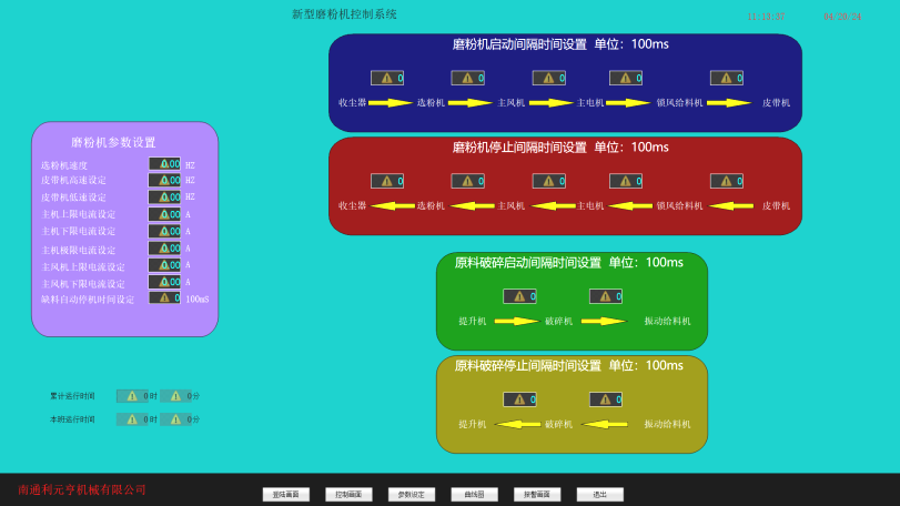 Mill Center Control Ready의 신호가 녹색 일 때, 밀의 수동 및 자동 선택 인터페이스에서 "수동"을 선택하십시오. "수동"버튼이 녹색으로 바뀌면 조작 인터페이스의 장비 패턴 옆에있는 빨간색 버튼을 클릭하십시오. 빨간색 버튼이 녹색으로 바뀌면 장비가 시작됨을 의미합니다. 수동 스위칭 시퀀스는 6 장을 나타냅니다.