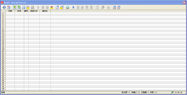 이 화면은 주로 장치의 경보 정보를 표시하고 나중에 볼 수 있도록이 정보를 저장하는 데 사용됩니다. 그림에서 볼 수 있듯이 모든 경보는 경보 시간, 확인 된 시간, 경보 메시지 및 경보 종료 시간을 갖습니다. 알람이 나타나면 연산자가 클릭하여 선택한 다음 "확인 된"버튼을 눌러 알람을 확인할 수 있으며 알람이 확인 된 시간에 표시됩니다. 경보는 발생할 때만 확인할 수 있습니다. 한 화면에 알람이 너무 많으면 "Flip Up"및 "Flip Down"버튼을 사용하여 화면을 뒤집을 수 있습니다.